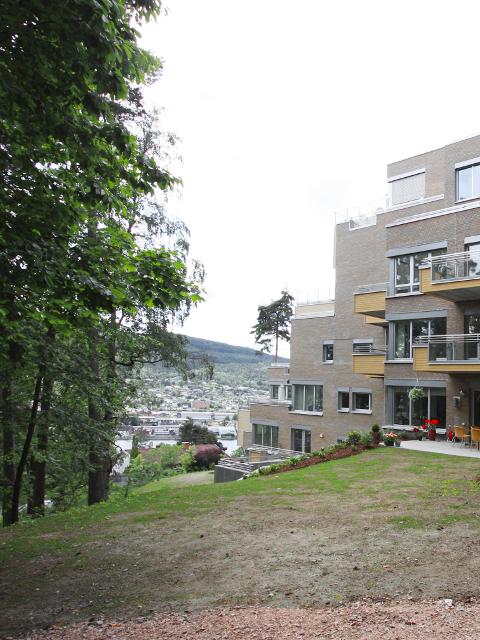 Bebyggelsen inneholder en stor garasjekjeller med plass til 103 biler. Bebyggelsen er terrassert i alle retninger og det var komplisert både å prosjektere og å utføre prosjektet. Huset har to fløyer med tilhørende heis- og trapperom. Toppetasjen i vestfløyen var opprinnelig tegnet med 3 leiligheter. Disse ble solgt til en kjøper som slo disse sammen slik at det ble 1 svært luksuriøs leilighet med til sammen 300 m2 bruksareal og terrasser i alle retninger.