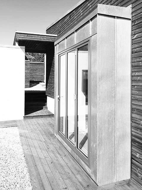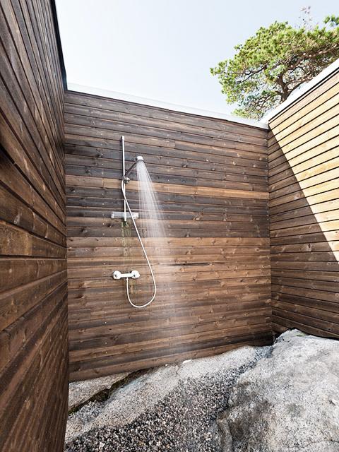 En liten hytte på 20 m2 ble revet for å gi plass til en romslig moderne hytte. Som vanlig i populære hytteområder langs kysten ble det naboprotester, men Fylkesmannen avgjorde saken slik at hytta kunne byggs slik den opprinnelig var tegnet. Hytta består av 3 elementer som er koblet sammen med tak. Terrenget ble oppmålt svært nøyaktig slik at bebyggelsen kunne tilpasses svabergene ved å legge hytta på ulike plan.