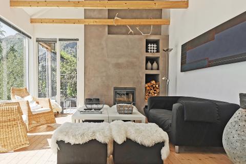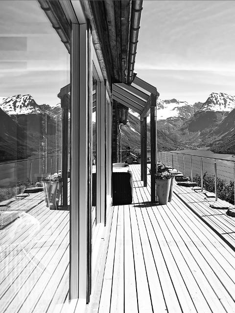 Hytta ligger på en bratt tomt, der grov stein har blitt en vitkig del av det ferdige resultatet. Hytta er langstrakt med en langsgående terrasse og store panoramavinduer mot den flotte utsikten. Hytta blir en del av naturen og naturen blir en del av hytten.