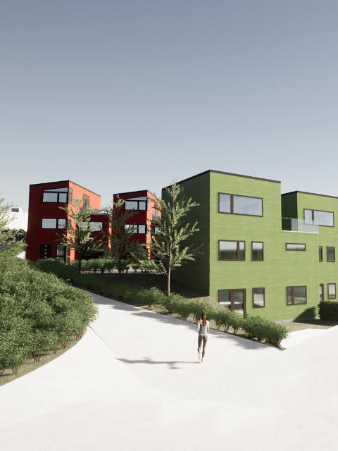 Holsfjord Panorama består av 18 rekkehus og 2 eneboliger. Her skal det skapes hyggelige møteplasser og varierte og spennende lekearealer.